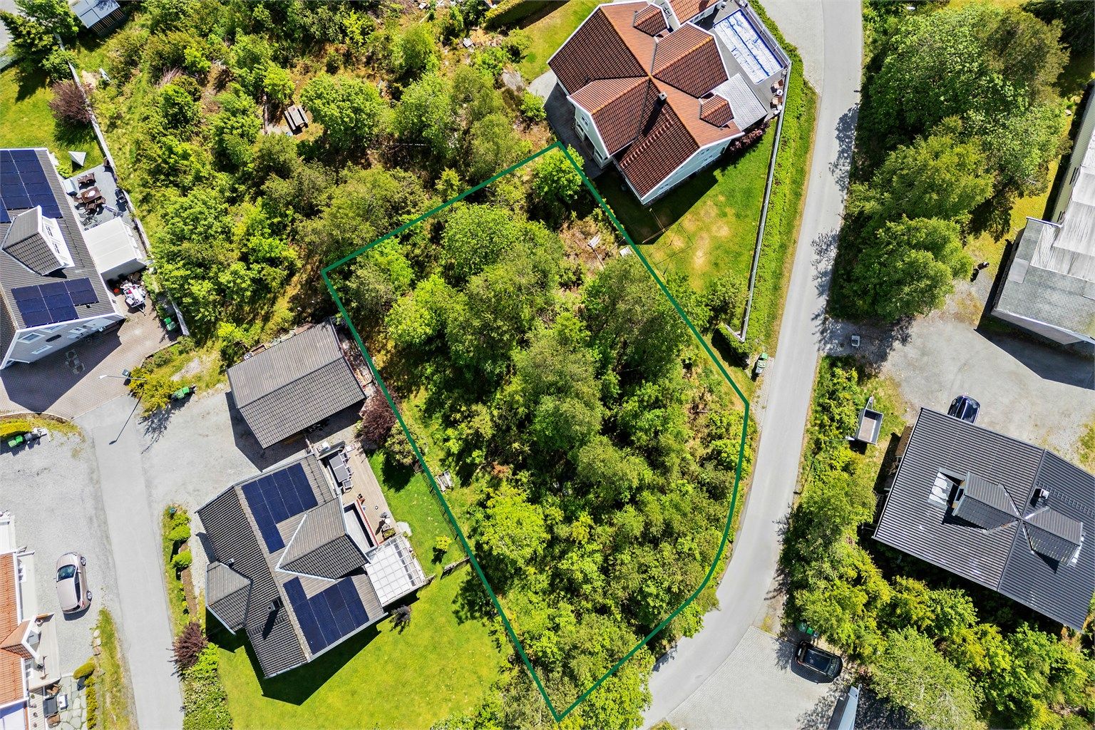 Eiet tomt på 811,9 kvm. Tomten er dekket av trær og diverse beplantning. Tomten ligger langs veien, med enkel adkomst.