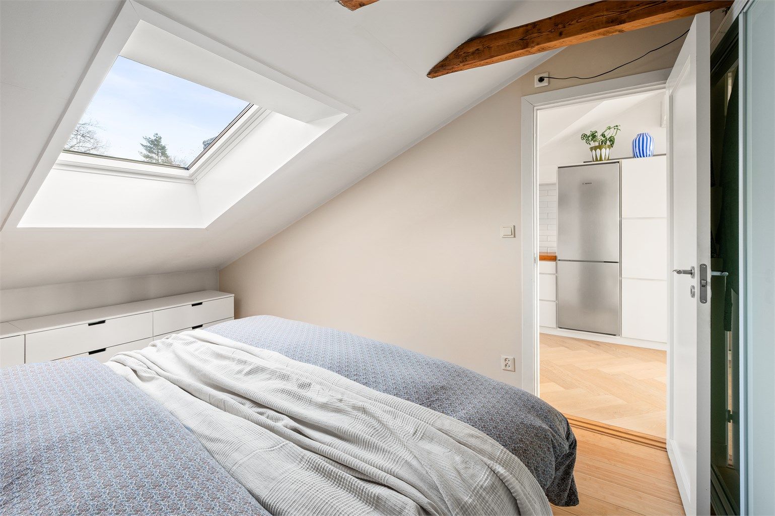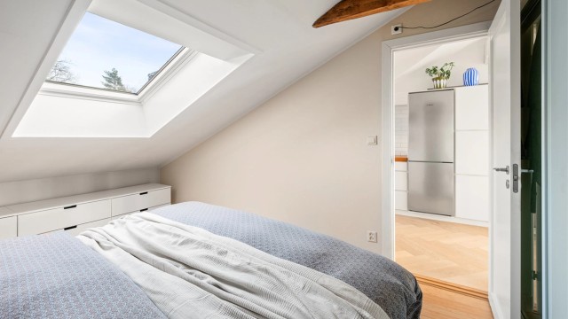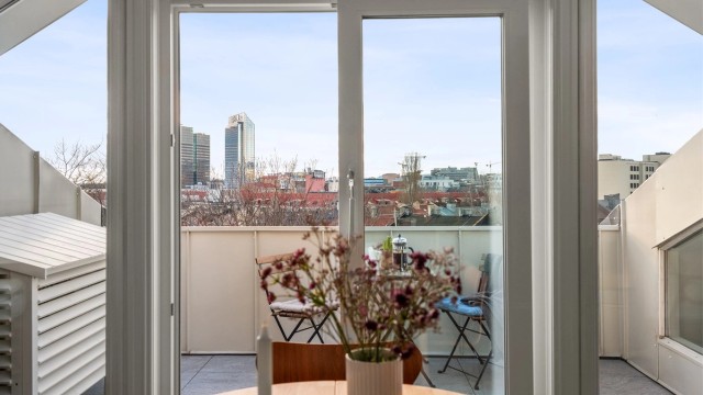 Her bor du tilbaketrukket og rolig, med umiddelbar nærhet til det pulserende bylivet på Tøyen og Grønland. Boligen har en åpen planløsning og sjenerøs takhøyde som gir en herlig romfølelse. Fra stuen er det utgang til en flott takterrasse hvor du kan nyte utsikten. Dette er en bolig som kombinerer klassisk bygårdssjarm med moderne komfort.