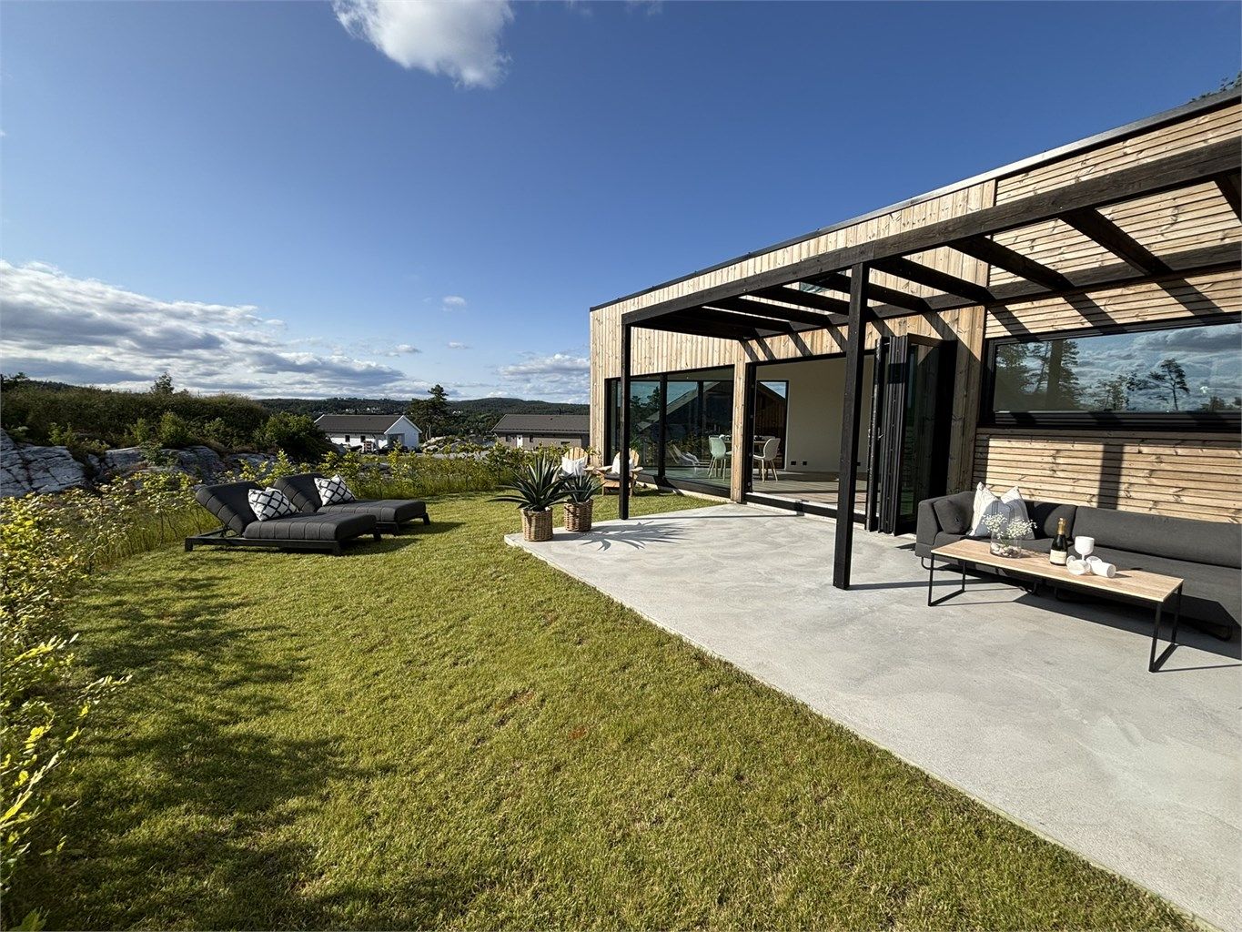Flott fritidseiendom med en fantastisk takterrasse, som gir deg en uforglemmelig sjøutsikt over Kaldvellfjorden. Her kan du finne hvilepulsen og ta en pust i bakken i en ellers hektisk hverdag. Meget gjennomtenkt og god planløsning som vil passe deg, enten du ønsker tid med familie og venner eller bare å nyte fred og ro alene. Her er alt du trenger for å gi følelsen av fritid, hygge og avkobling, inkludert moderne fasiliteter og høy kvalitet. Hytten byr på fire soverom, åpen kjøkken/stue løsning, bad, toalett samt bod. Denne hytten må oppleves!. Det er mulighet for kjøp av 3 m båtplass for kr 175.000,-.