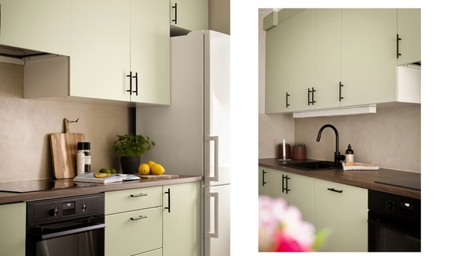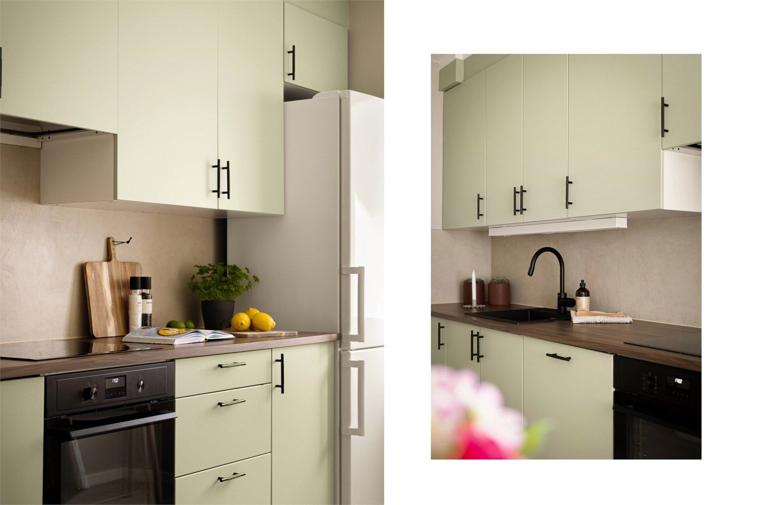 - Kjøkken: maling, ny benkeplate, lakkering av kjøkkenfronter, nye kjøkkenhåndtak, nye integrerte hvitevarer, ny vask med blandebatteri og vannstoppeventil. Elektrisk arbeid utført av Bravida (ekstra stikk for stekeovn og oppvaskmaskin, nytt lysarmatur, vannstopp og varmtvannsbereder). Montering av stoppeventil og blandebatteri utført av Olav Mørner AS.