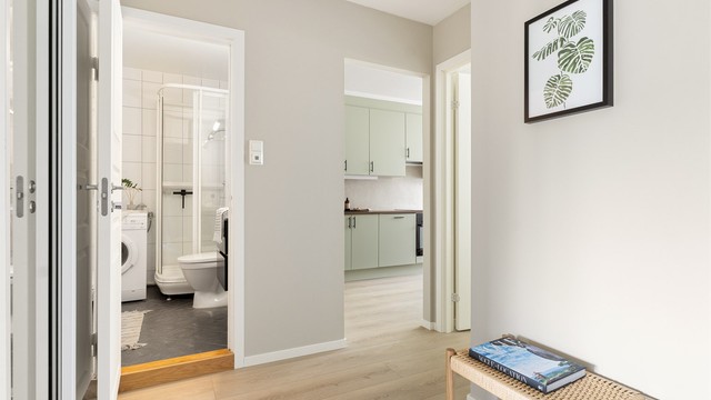 Leiligheten ligger i byggets 1. etasje og har en enkel adkomst med få trappetrinn. Boligen har en gjennomgående god standard med lyse, moderne overflater og oppgradert kjøkken.