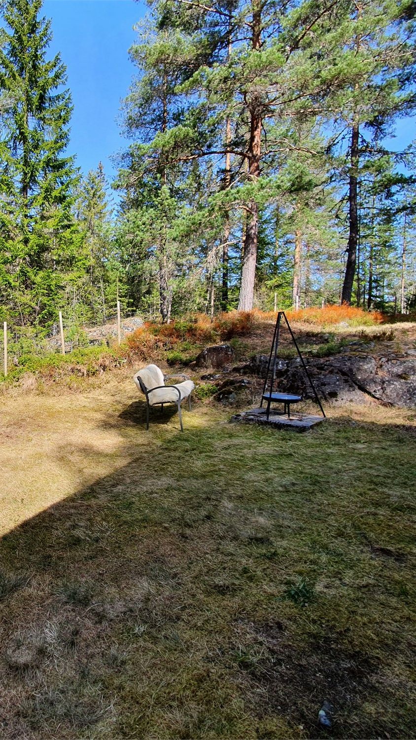 Det som medfølger hytta er alt av løsøre og tilbehør som står der på visning, inkl køyeseng, bord, stoler inne og ute. Unntatt teppe på veranda.