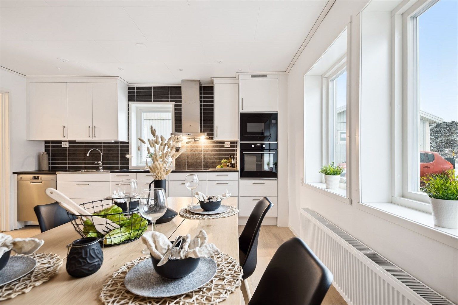 Med en innholdsrik planløsning strekker stuen seg gjennom boligen, og gir frihet til å møblere stuen etter eget ønske. Boligen bærer preg av god kvalitet, stilrene overflater og store vindusflater som tilfører godt med naturlig sollys.