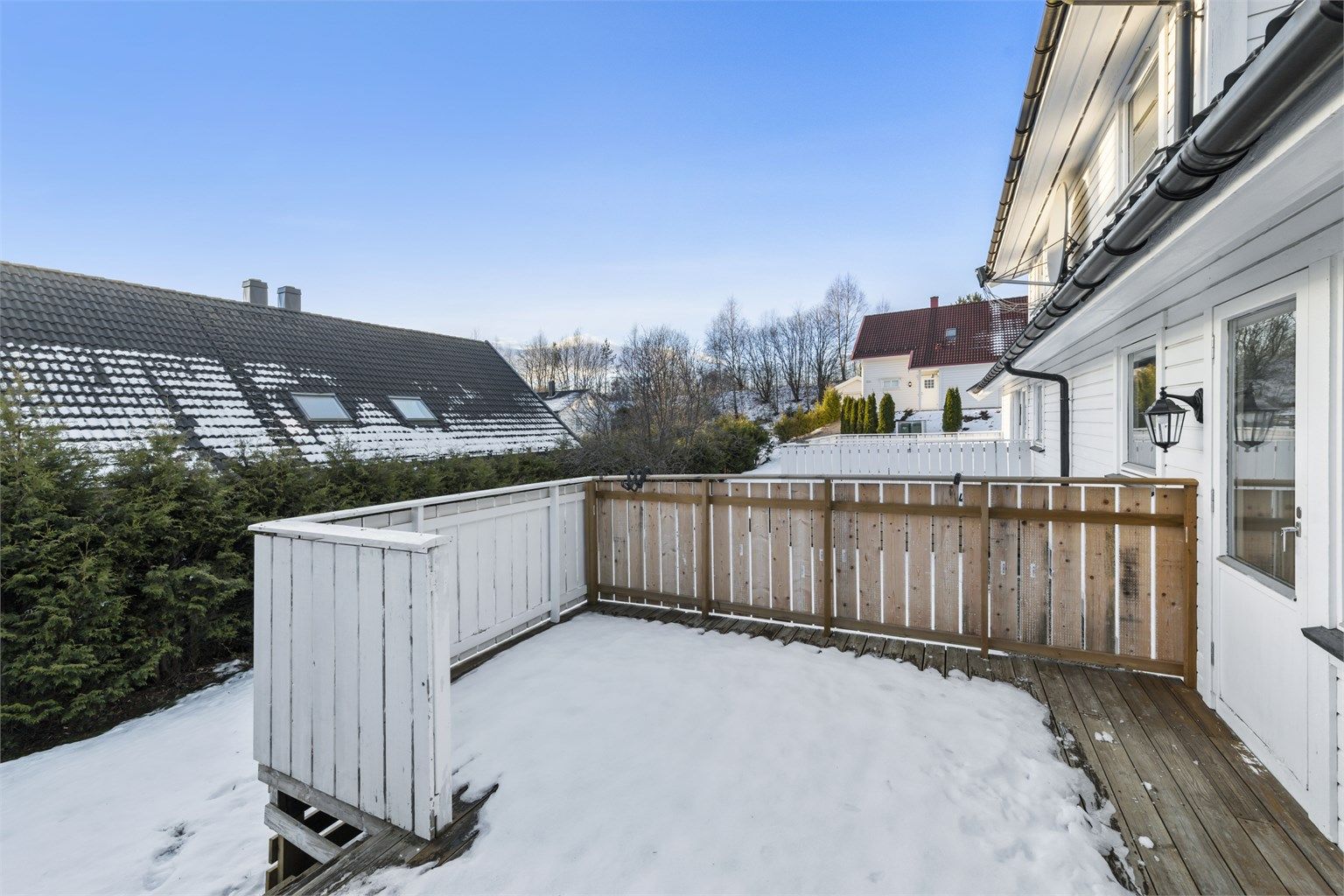 Stor bolig med mange rom, og det er inngang til boenheten både fra 1. etasje og kjeller. Boligens hovedetasje inneholder entré, stue med åpen kjøkkenløsning, bad og soverom. Det er utgang fra stue til terrasse, og adkomst via innvendig trapp til kjeller fra denne etasjen. 2. etasje består av gang, bad og tre soverom. Kjelleren inneholder entré, kjellerstue, kjøkken, bad, kontor og soverom. Kjelleren er ikke en selvstendig enhet, men det er egen inngang i kjeller. Eiendommen har dobbelgarasje.