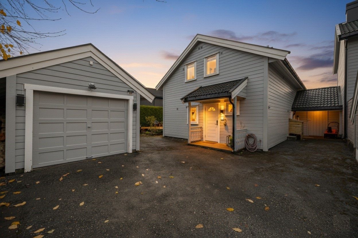 Fra gårdsplassen er det adkomst til boligens overbygde inngangsparti i 1. etasje. Tilgang til en tilliggende utvendig bod. S t u e Stue med sofaområde og spiseplass. Åpen løsning mot kjøkkenet. Luft-til-luft varmepumpe. Frittstående peisovn med glassplate på gulv, pent plassert i midten av rommet. Downlights i takkasse og gulvvarme. Parkett på gulv, malte vegger og malt himling. Utgang til en romslig sydøstvendt platting/markterrasse fra 2024 på totalt 162 kvm med varierte soner. Plattingen/terrassen er opparbeidet i flere nivåer med nedfelte bed og strekker seg rundt to sider av boligen. Deler av plattingen er takoverbygget (ikke byggemeldt) og har levegger. Det er også etablert en hyggelig paviljong i 2024. Fin og variert beplantning med bl.a. frukttrær (eple, plomme, pære og moreller), drueranker, bærbusker og stauder. Uteplassene har sol fra ca. kl. 06.00 til 21.00-22.00 (midtsommerstid) iflg. selger. K j ø k k e n Stilren og moderne Kvik-kjøkkeninnredning, montert i 2021. Over- og underskap samt høyskap i hvit og glatt utførelse. Praktisk kjøkkenøy på 2,8 m med barløsning og underskap. Det er godt med skap- og skuffplass, i tillegg er det en romslig arbeidsbenk. Benkeplate av kompositt. Videre er kjøkkenet utstyrt med integrert kaffemaskin i høyskap (Miele), integrert mikrobølgeovn i høyskap (Bosch), 2 integrerte stekeovner i høyskap (Grundig), vegghengt ventilator, integrert platetopp (Siemens - 90 cm), nedfelt oppvaskkum i benkeplate, integrert oppvaskmaskin og frittstående side-by-side kjøleskap med fryseskuffer samt vanndispenser (2016). Downlights i tak og gulvvarme. Fliser på gulv (2025), malte vegger og plater i himling. B a d 1 Moderne bad i 1. etasje, med store flisoverflater og sorte detaljer. Badet ble rehabilitert i 2024. Heldekkende servant over servantskap i glatt utførelse. Speil med integrert lysarmatur over servant. Vegghengt innredning med hyller, klesskinner og tørkestativ. Videre er badet utstyrt med vegghengt toalett og dusjhjørne med foldedører av glass samt regnfallsdusj. Opplegg for vaskemaskin under benkeplate. Downlights i tak og gulvvarme. Fliser på gulv, fliser på vegger og malt himling. B a d 2 Lyst og pent bad fra 2013 i 2. etasje, som har en lun utførelse. Heldekkende servant (kran fra Tapwell) over servantskap i glatt utførelse. Speil med integrert lysarmatur over servant. Videre er badet utstyrt med vegghengt toalett og dusj med dusjdører av glass, regnfallsdusj (dusj fra 2024 - Tapwell) samt kabinett bunn. Downlights i tak og gulvvarme. Fliser på gulv, fliser på vegger og malt himling. S o v e r o m Boligen har 3 soverom praktisk plassert i 2. etasje. Hvorav ett soverom har innebygget skyvedørsgarderobe og et annet soverom har en garderobenisje i vegg med hylle samt klesskinne. Rommene er malt i moderne farger og har noe spiledetaljer. Del av soverom 3 er opprinnelig byggemeldt som bod. G e n e r e l t o m b o l i g e n- Lagringsplass i bod under trapp. - Innredet loftstue og ett soverom var nymalt i november 2025. - Overflater i 1. etasje er parkett samt fliser på gulv (fliser fra 2025), malte vegger og plater i himling. - Overflater i 2. etasje er laminat, parkett samt spon på gulv, malte vegger og plater i himling. - 200 liters Oso varmtvannsbereder fra 2024, plassert på bad i 1. etasje. - Sikringsskap med automatsikringer, plassert i entré.