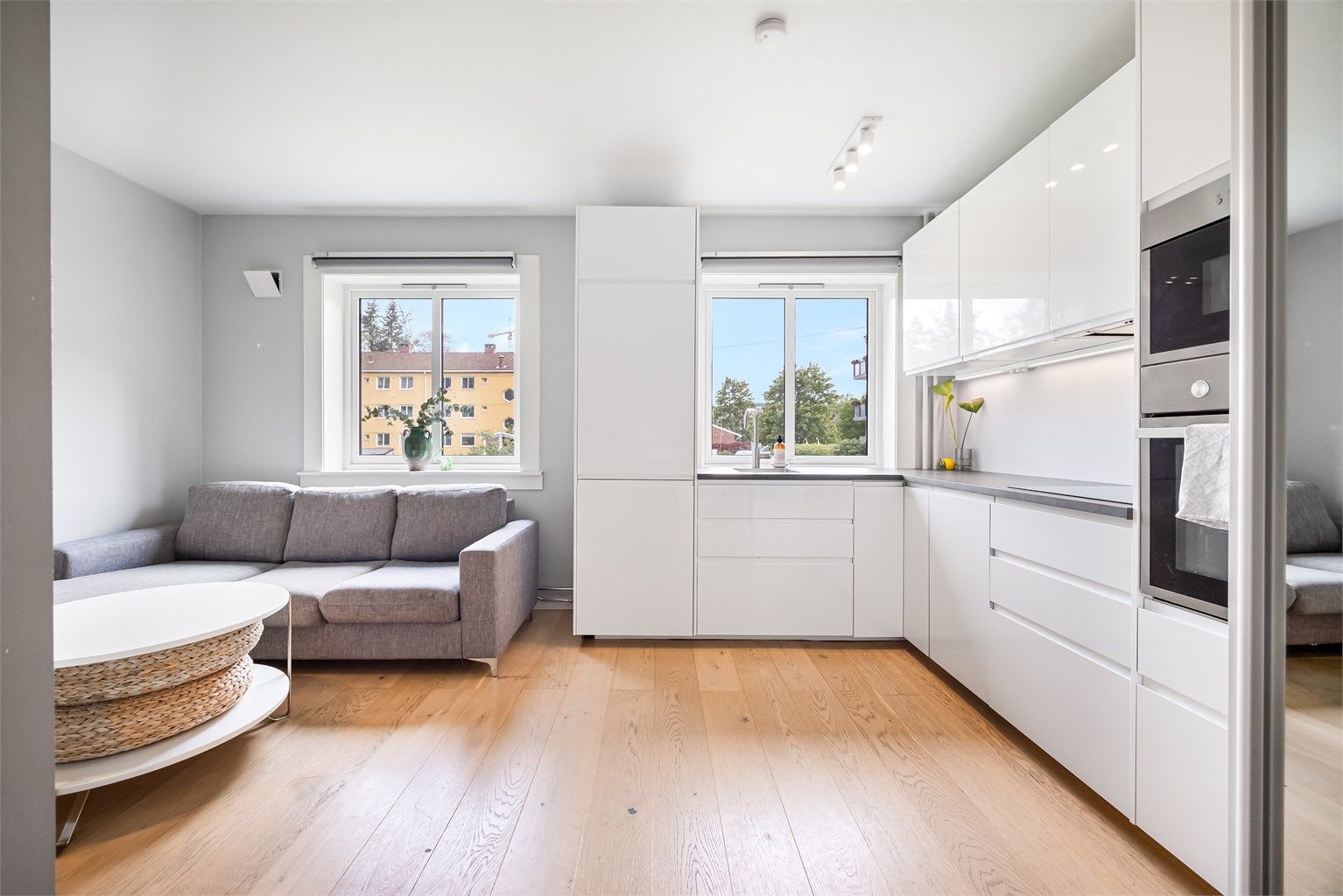 En lys og arealeffektiv eierleilighet i naturskjønne og rolige omgivelser nær marka, men med nærhet til kollektiv transport som tar deg inn til sentrum.