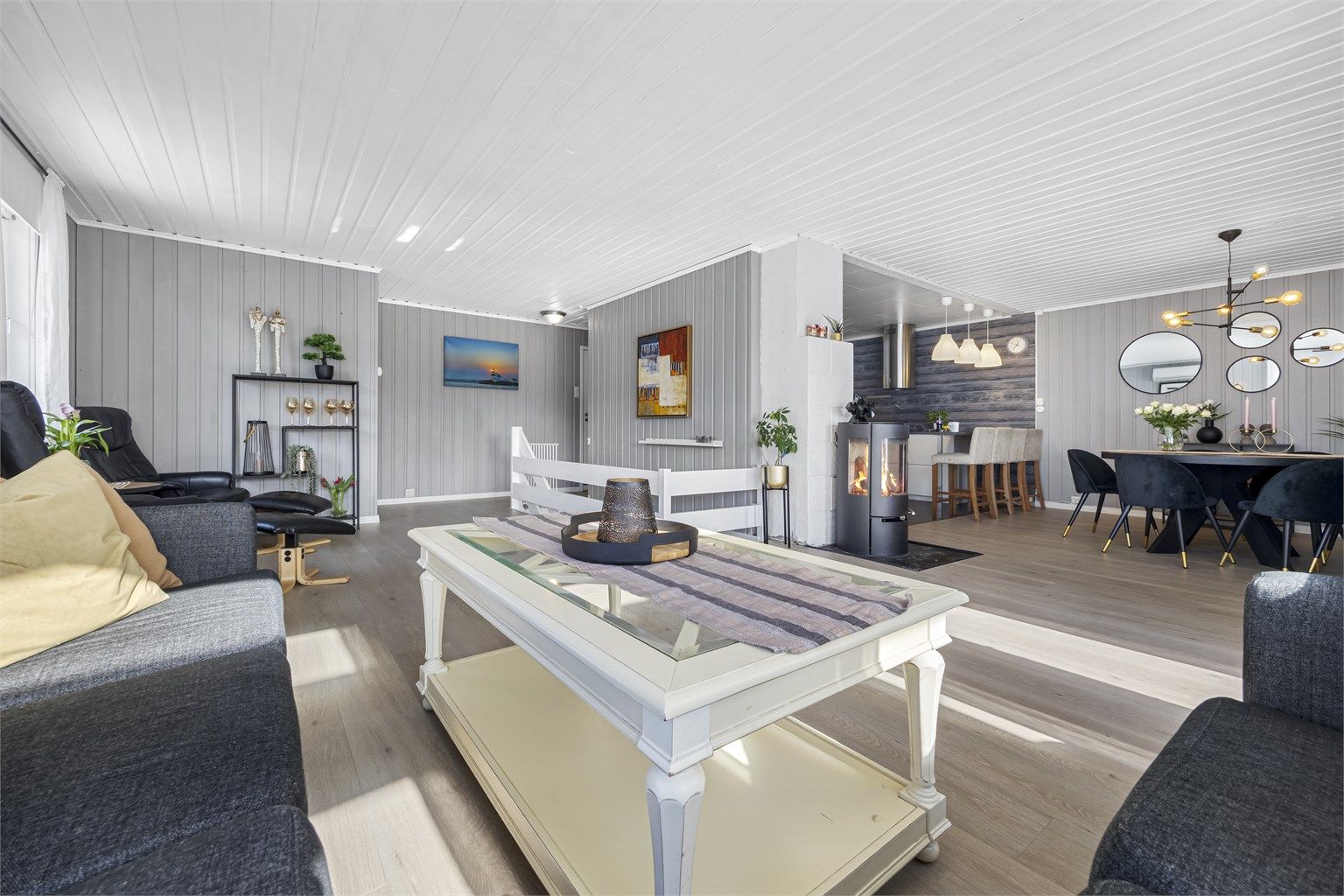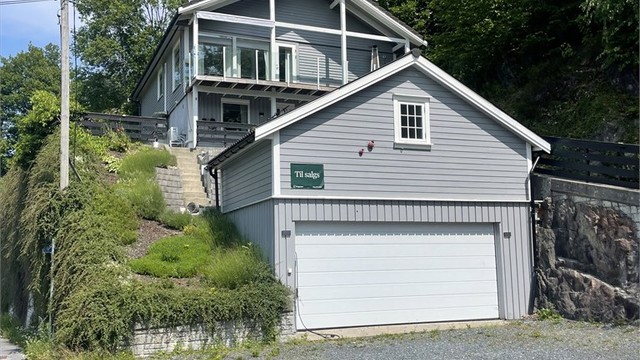 Meget innholdsrik enebolig med dobbel garasje og flotte uteplasser! Boligen ligger knapt 200 meter fra sentrum og i gangavstand til VGS, barnehage, skole mv. Boligen har sol fra 09-21:00 midtsommers. Garasjen har innlagt strøm, samt elbillader og god lagringsplass på loftet med flere bodrom. Boligen har i dag tre soverom, to stuer, to baderom, ekstra toalettrom, bod, klesrom, stor stue og kjøkken i åpen løsning. Det tilhører litt hage og tinglyst rett til parkering i front av garasjen. I tillegg er det også et romslig øverloft med muligheter. Her kan man bo veldig sentralt med gangavstand til både badestrand, bakerier, restauranter og sentrumshavna blant annet. Det er montert en varmepumpe i hver etasje, samt peisovn i stue.