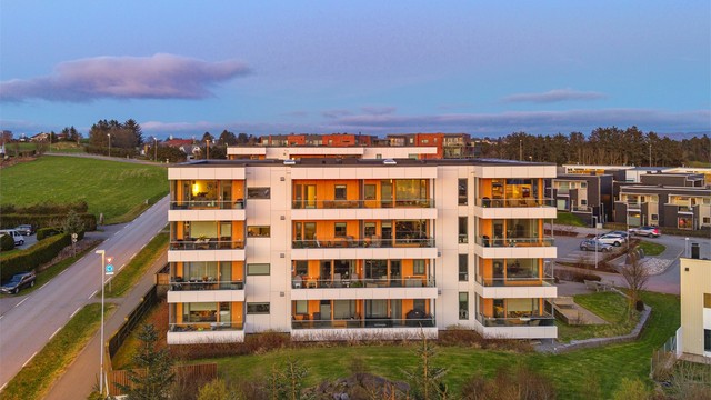 Leiligheten har 2 parkeringsplasser med elbillader og stor bod i garasjeanlegget for ytterligere oppbevaring.