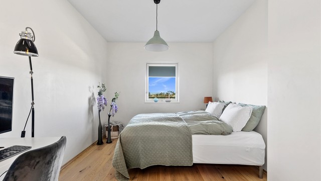Det er mulighet for å etablere et tredje soverom i leiligheten. Dette er inntegnet på de originale plantegningene, plassert like ved dagens gjesterom mot stuen. Nåværende gjesterom er noe større enn opprinnelig planlagt, da det i de originale tegningene er lagt opp til to mindre soverom i tillegg til hovedsoverommet. Dette gir en ny eier god fleksibilitet i planløsningen, slik at man enkelt kan tilpasse boligen dersom det er behov for et ekstra soverom.