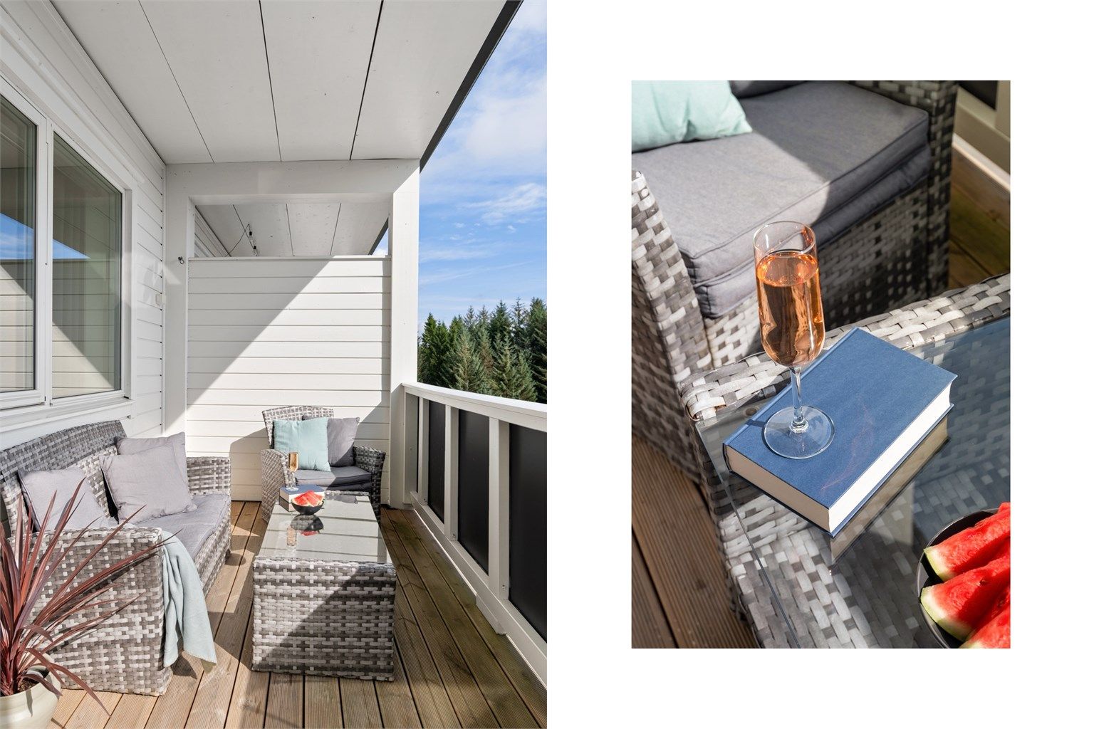 Overbygd balkong på ca. 8 kvm med utgang fra stuen