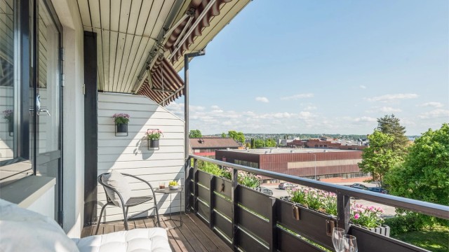 - Solrik balkong med fint utsyn som har adkomst fra stuen