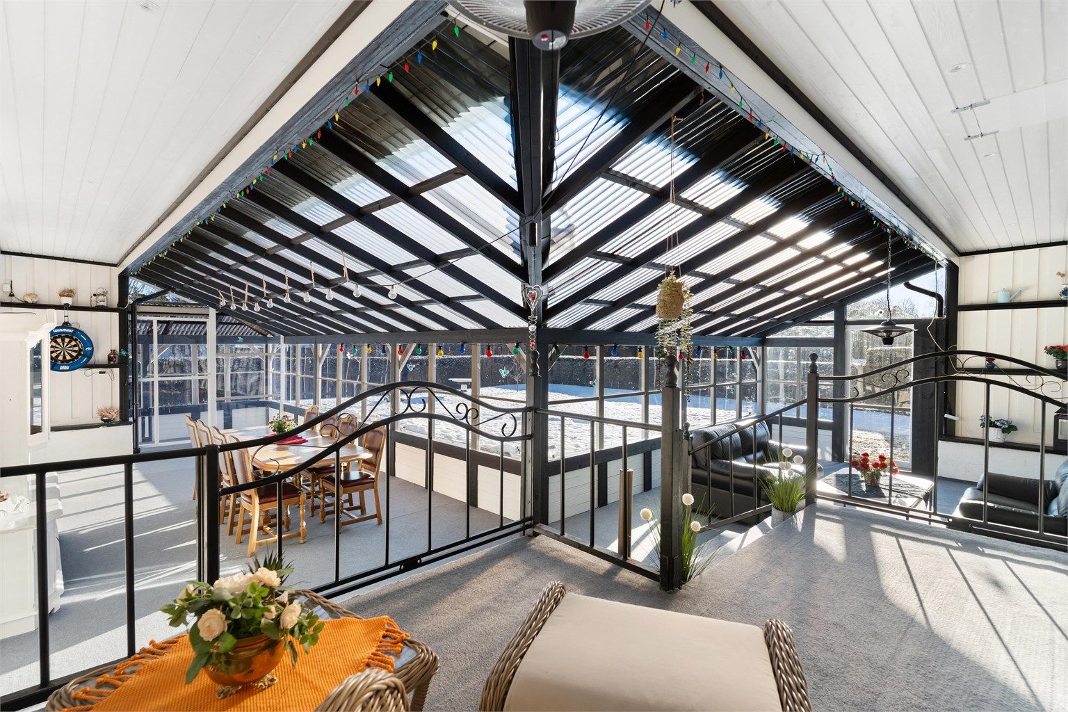 Er du på jakt etter en romslig enebolig med gode utviklingsmuligheter? Da bør du ikke gå glipp av denne unike muligheten. Her får du en velholdt og innholdsrik bolig med store rom og en spennende mulighet for videre innredning. Huset har romslige og åpne løsninger som gir en god flyt mellom rommene. Den store vinterhagen er virkelig et høydepunkt – et ekstra rom som gir deg plass til å samles med familie og venner, enten det er vinter eller sommer. Her kan du nyte de lyse, solfylte dagene på vinteren, eller skape minner sammen med dine nærmeste året rundt. Utvendig finner du en velholdt tomt som gir rom til både lek, avslapning og hagearbeid. Den store plenen gir plass til både hagefester og barnelek, mens en prydende hekk omkranser hele eiendommen og gir et privat og skjermet uteområde.