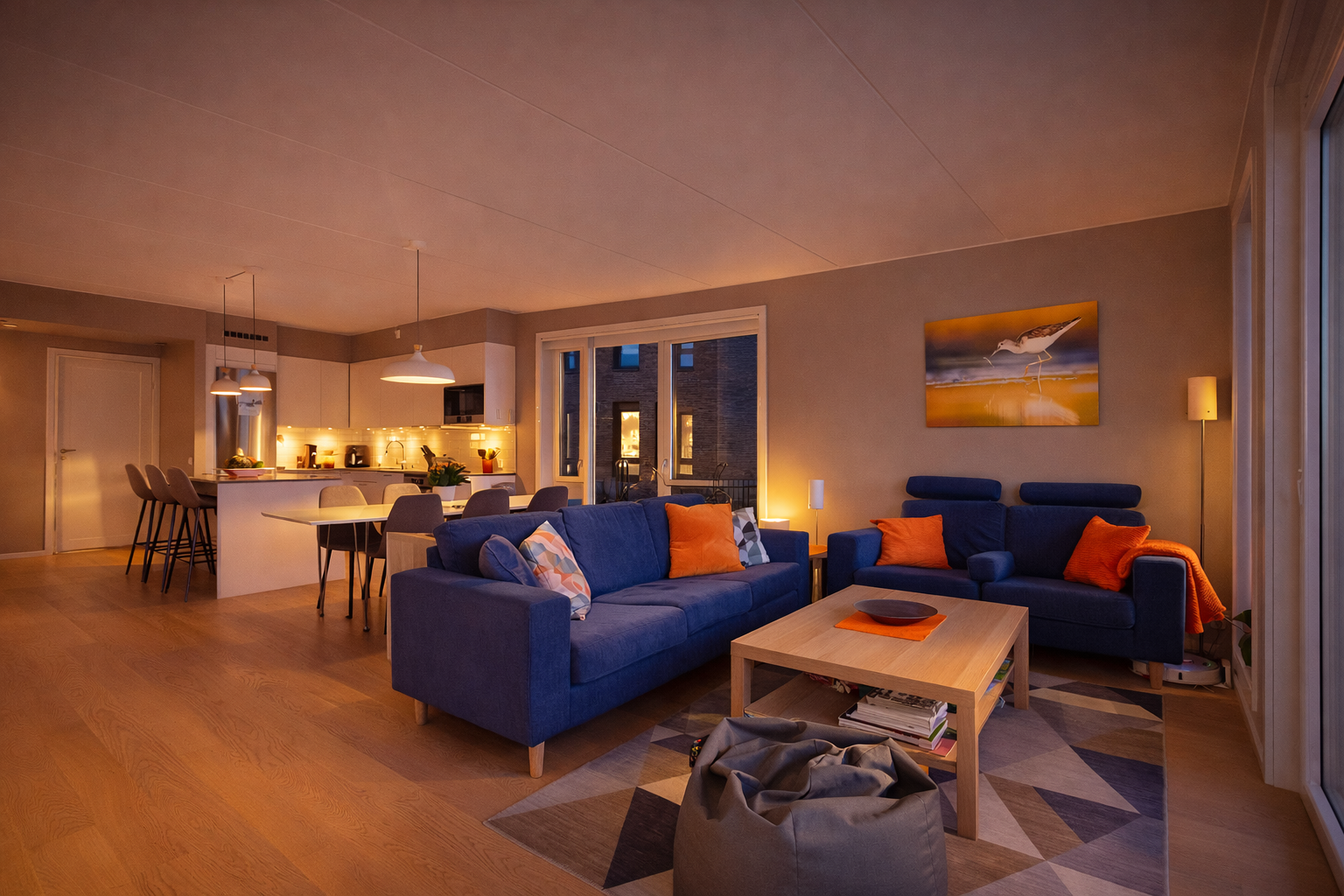 Leiligheten utmerker seg med et helhetlig og gjennomført uttrykk der moderne arkitektur, kvalitetsmaterialer og elegant design danner en sofistikert ramme rundt hverdagen. Her er det lagt vekt på både funksjon og estetikk, med løsninger som skaper en luftig og behagelig atmosfære. Store vindusflater slipper inn rikelig med naturlig lys og fremhever de rene linjene og de lyse, delikate overflatene. Den åpne planløsningen gir en sømløs flyt mellom oppholdsrommene og gjør boligen perfekt for både rolige hverdager og sosiale sammenkomster. Gjennomgående parkett, vannbåren gulvvarme og balansert ventilasjon gir en komfortabel og tidløs helhet – et hjem som kombinerer moderne livsstil med varme og eleganse.