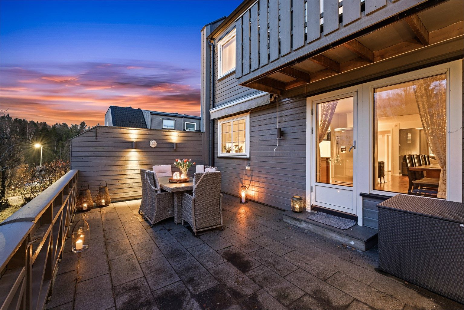 Innbydende enderekkehus med inngjerdet og usjenert hjørnetomt og terrasse | Barnevennlig nær Østmarka | Garasjeplass