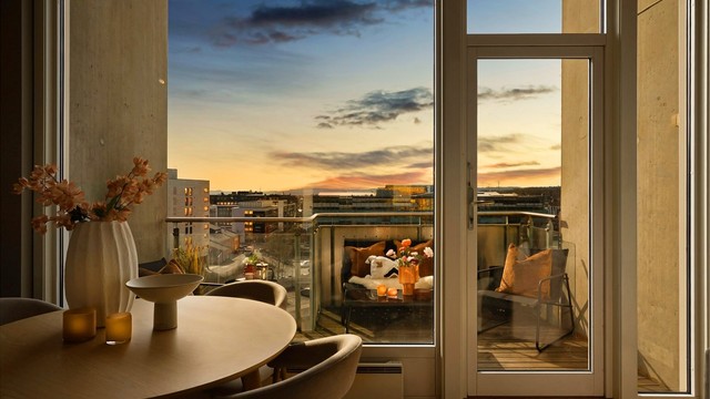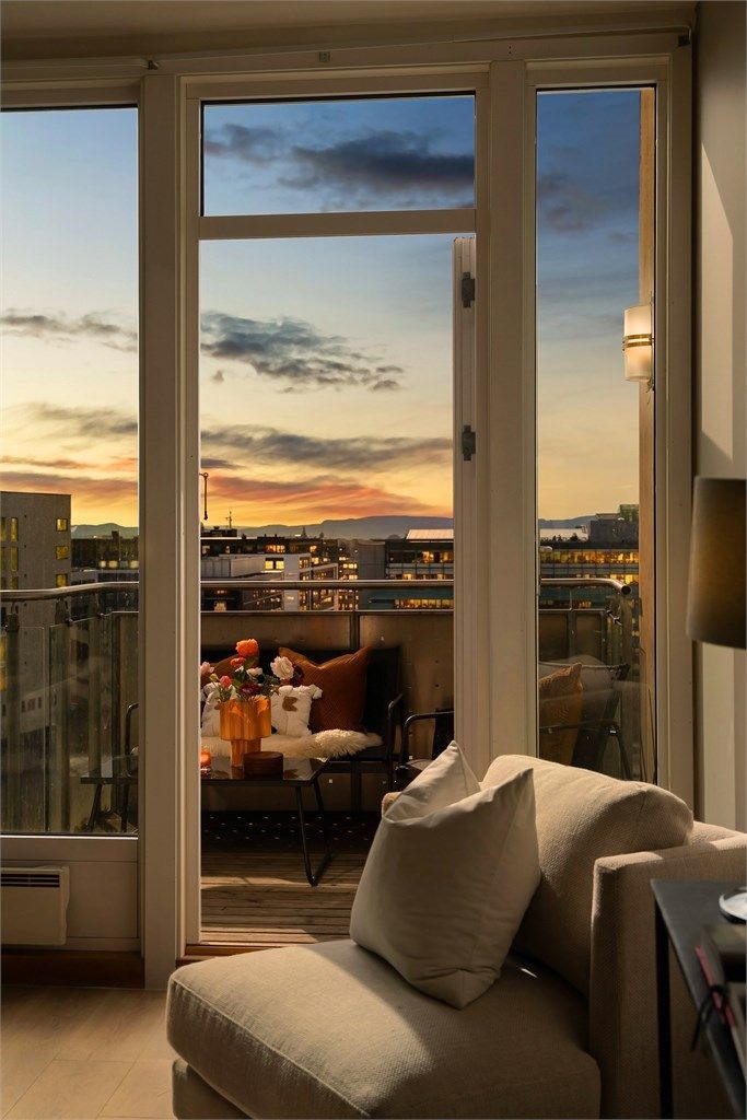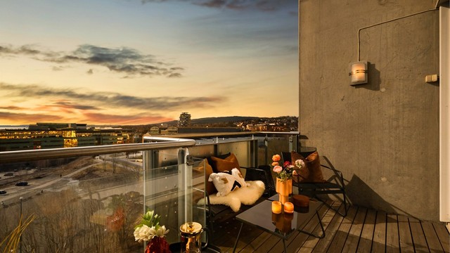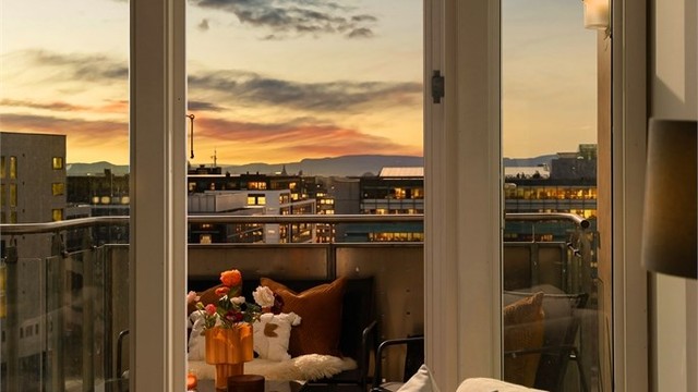 6. etasje, 12 kvm: To balkonger på hhv. 8 og 4 kvm.