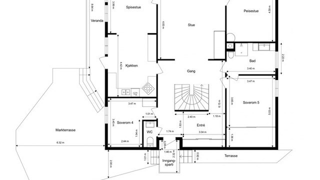 1. etasje 73 kvm: Veranda, markterrasser og inngangsparti.
