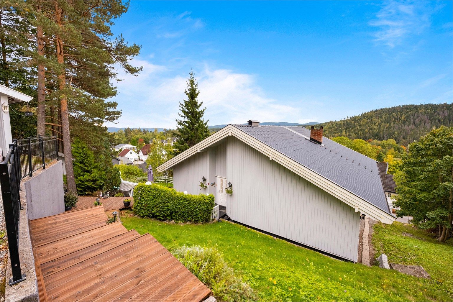 Romslig og attraktivt beliggende enebolig på Konnerud m. dobbelgarasje, flere uteplasser og stor tomt!