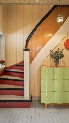 - Stedvis knirk ved dørterskler og øverst i trapp.