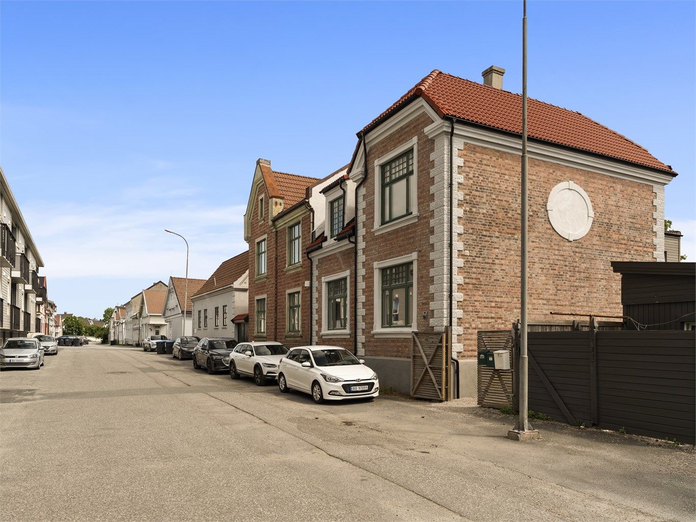 b>Stilfull, klassisk moderne tre-roms i vakker telgsteinsgård på Seiersten