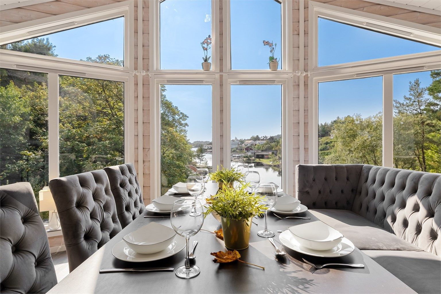 Terrasse med panoramautsutsikt sjøutsikt og gode solforhold.