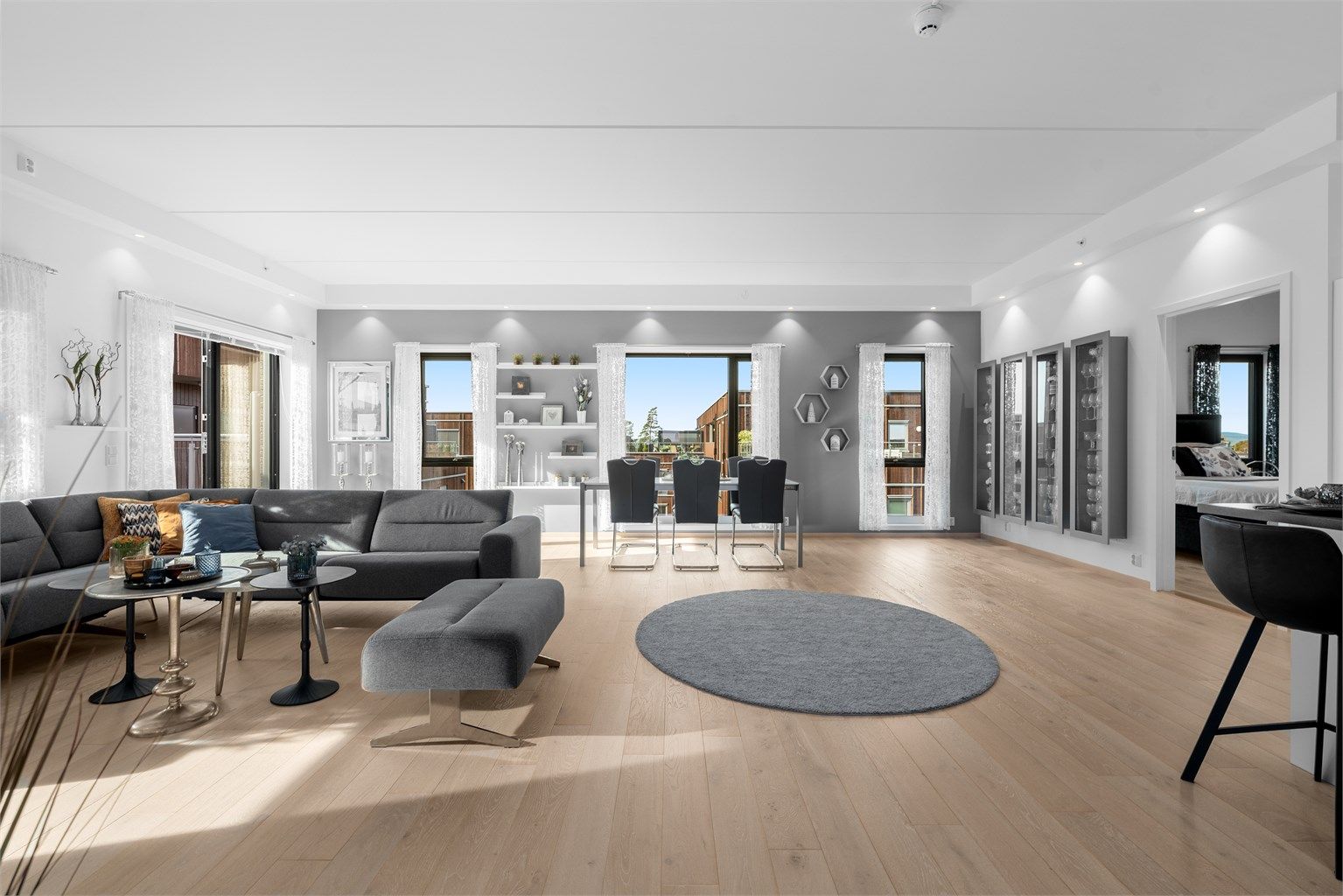Rålekker toppleilighet som kombinerer moderne komfort med et snev av hverdagsluksus. Stilfull, stor 4-roms selveierleilighet med gangavstand til "alt". Svært luftig, med en takhøyde på 2.90m. Leiligheten byr på en fantastisk privat, usjenert terrasse på hele 83 kvm. Her kan du skape flere soner for både soling, middager under åpen himmel og hyggelige kvelder. To garasjeplasser, begge klargjort for elbilladere, setter prikken over i-en på en svært attraktiv helhet. Innendørs møter du et lyst og gjennomført hjem med stilrene materialvalg, vannbåren gulvvarme og store vindusflater som gir rikelig med dagslys. Kjøkkenet er stort, moderne, funksjonelt og fullt utstyrt med integrerte hvitevarer. Videre er det to delikate bad og tre gode soverom med supre garderobeløsninger. Praktisk kjellerbod.