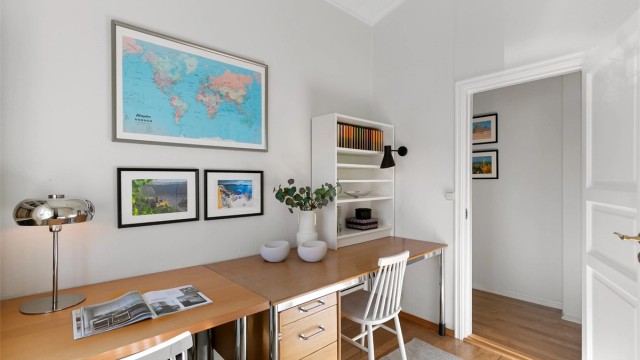 2. etasje 43 kvm: Gang, kontor, 2 soverom og bad