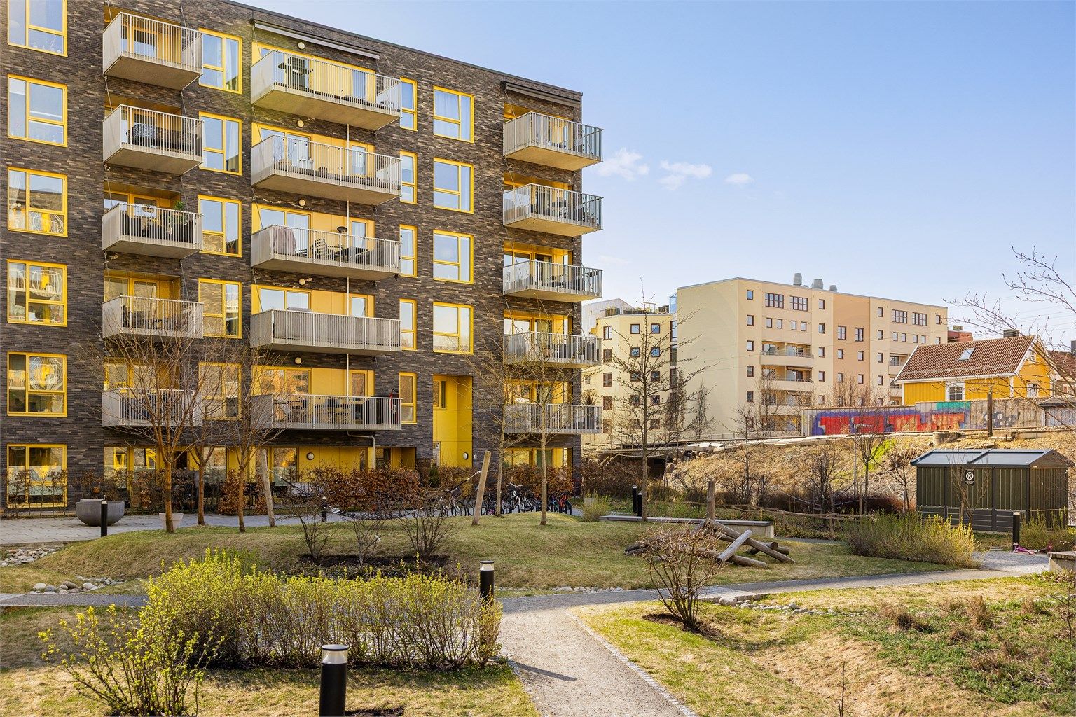 - Sameiet er forpliktet til å delta i eventuell fremtidig etablering og vedlikehold av en støyskjerm mot Gjøvikbanen. Kostnadene vil bli fordelt på seksjonseierne.