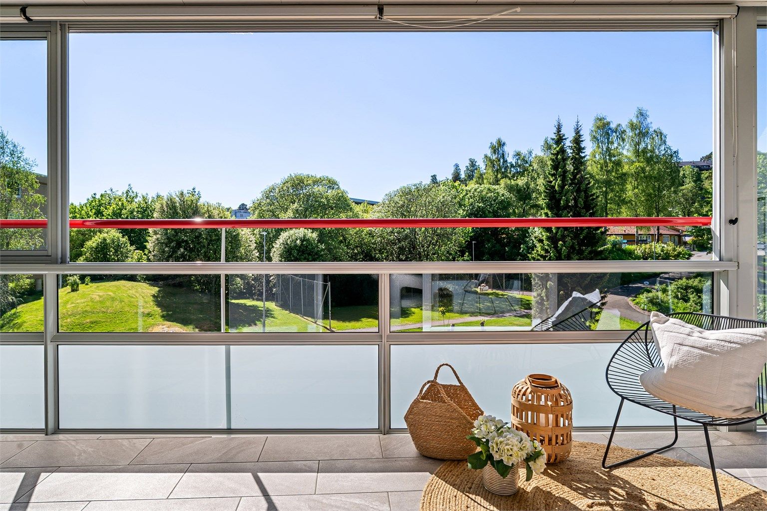 Innglasset vestvendt balkong på ca. 19 kvm