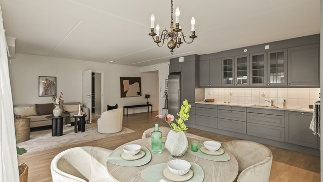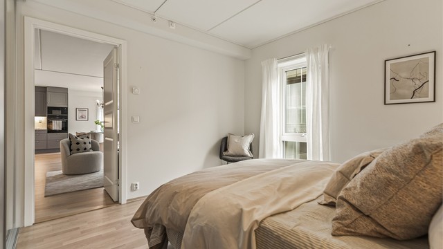 Velkommen til Hegnaveien 3- en lys og lekker leilighet i sentrale omgivelser. Her bor du lettstelt og moderne, med en sjelden kombinasjon av umiddelbar nærhet til dagligvarehandel og kort vei til både Sandefjord sentrum og fine turområder. Leiligheten er lys og delikat innredet og holder en gjennomgående god standard. Gulvene har for det meste klassisk, pen trestavs eikeparkett og fliser. Planløsningen er effektiv og god, med to soverom, bad, et eget praktisk gjestetoalett og innvendig bod. Stue og kjøkken ligger i åpen løsning med store vindusflater. Fra stuen har du også utgang til egen innglasset balkong, hvor er det også montert varmeovner og utvendig solskjerming (elektrisk).