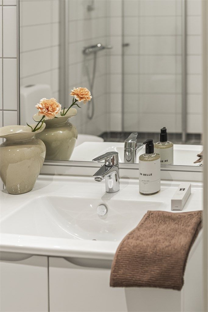Romslig og flott flislagt bad med varmekabler i gulvet. Det er montert lys innredning med slette fronter og heldekkende servant, samt speil med overlys. Dusjhjørnet har glassvegger, og det er montert et moderne vegghengt toalett. Opplegg for vaskemaskin. Leiligheten har også et praktisk toalettrom med flislagt gulv og gulvvarme. Veggene er malt, og det er montert innredning med vegghengt servant og vegghengt toalett.