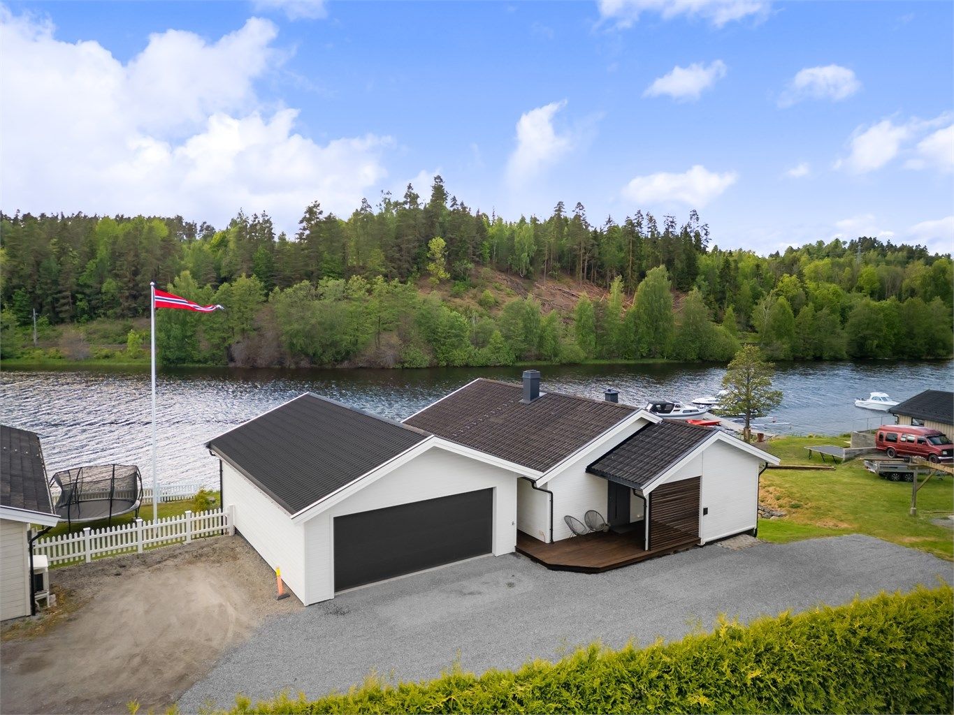 Enebolig med attraktiv beliggenhet ca 30 meter fra elva. Solrikt og flott utsikt. Stor dobbelgarasje med lagringsrom.