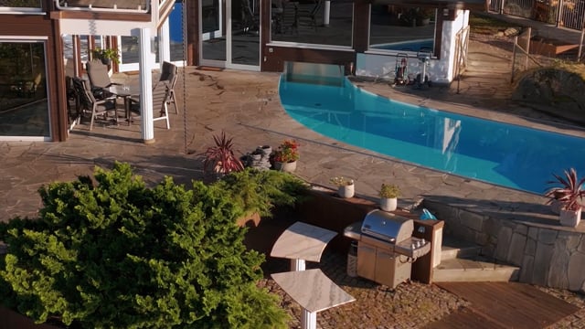 Enestående villa med sterk egenart, tegnet av arkitekt Konrad Halvorsen. Fantastisk fjordutsikt. Swim-out basseng.