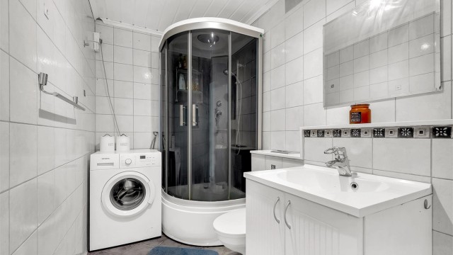 Det er ingen dokumentasjon på utførelse av våtrommet med den risiko det innebærer. Rommet har ikke synlig sluk i rommet. Avløpsrør fra dusjkabinett og opplegg for