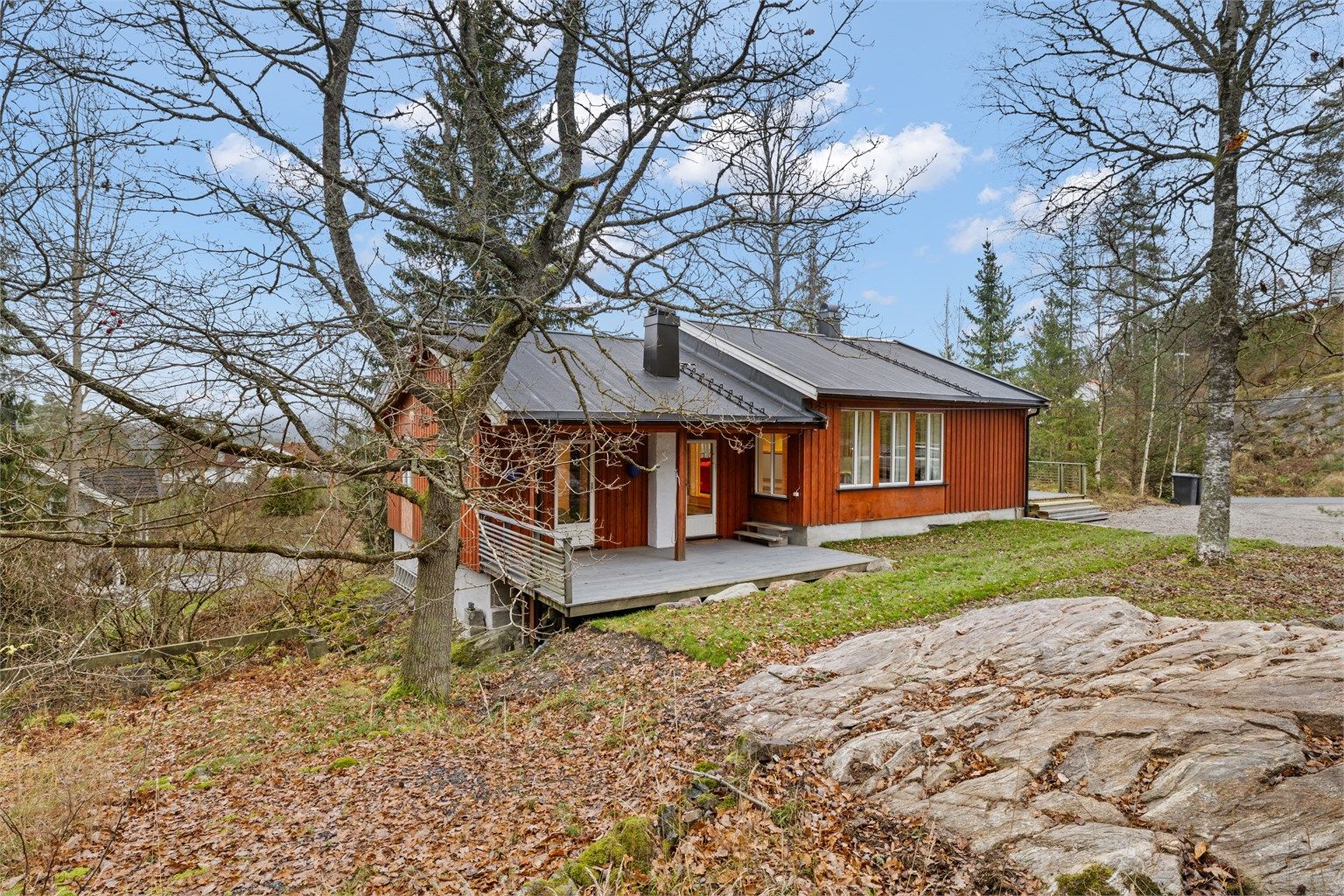 Sjarmerende, arkitekttegnet enebolig med god planløsning, solrike uteplasser. Boligen ligger på en stor, eiet tomt i barnevennlige omgivelser med kort vei til skole, barnehage og flotte turområder. Lys og romslig stue, kjøkken fra 2020 med integrerte hvitevarer og to romslige soverom med plass til dobbeltseng. Mellom soverommene ligger en lun kontor-/lesekrok med vedovn som effektivt kan varme opp hele huset. Fra både kjøkken og hovedsoverom er det direkte utgang til hver sin veranda - perfekt for morgenkaffe og sommerkvelder. Bad med gulvvarme, samt gode lagringsmuligheter i både bolig og frittstående bod. Boligen kombinerer nyere oppgraderinger med klassisk sjarm - et hjem du kan sette ditt preg på!