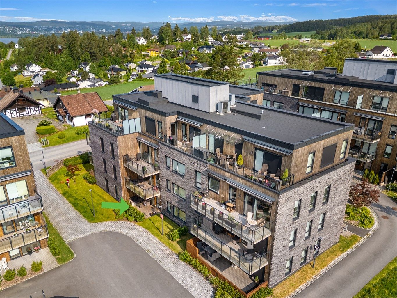 Gardertoppen! Pen 3-roms selveier på bakkeplan med markterrasse og garasjeplass