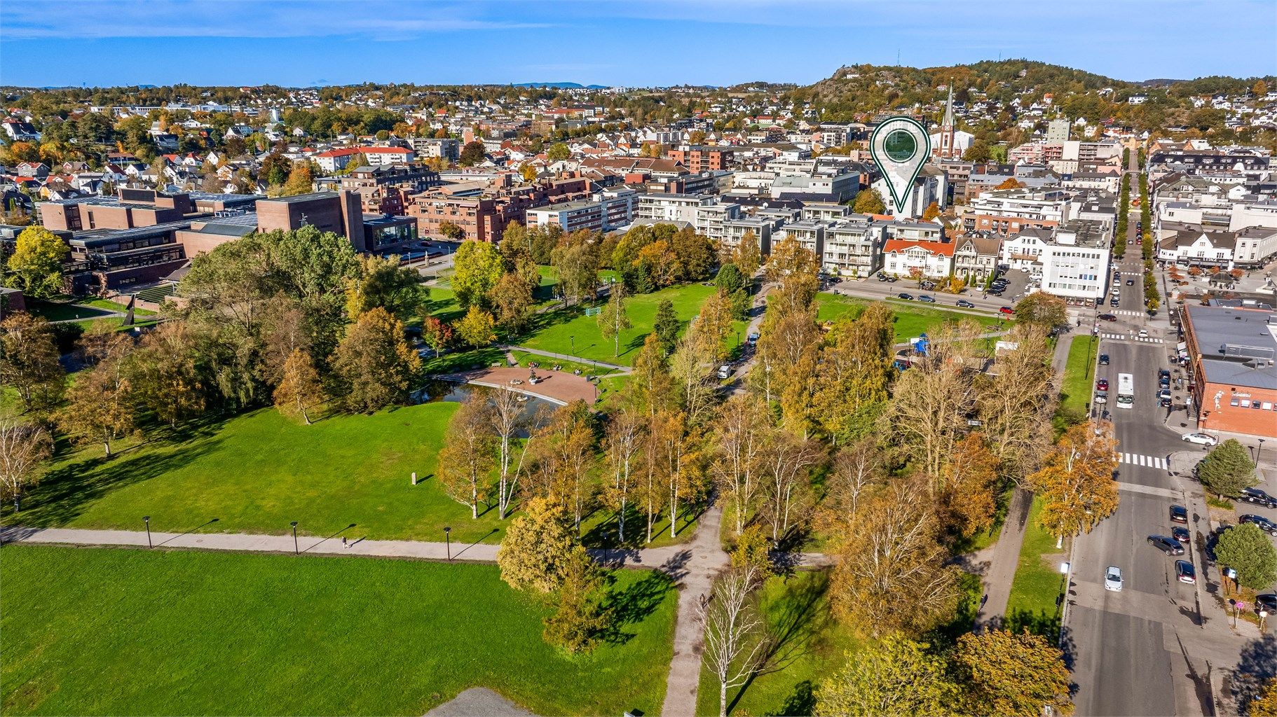 I luftlinje fra balkongen er det kun 50 meter til fantastiske Badeparken, og leiligheten kan friste med utsikt ut over park og havn.