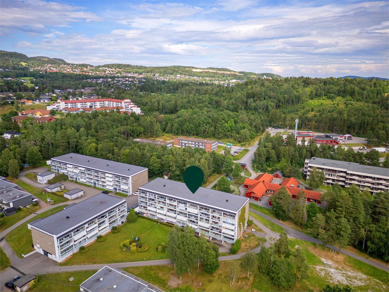 Innglasset og solrik vestvendt balkong på ca. 16 kvm med fin utsikt over Lierdalen