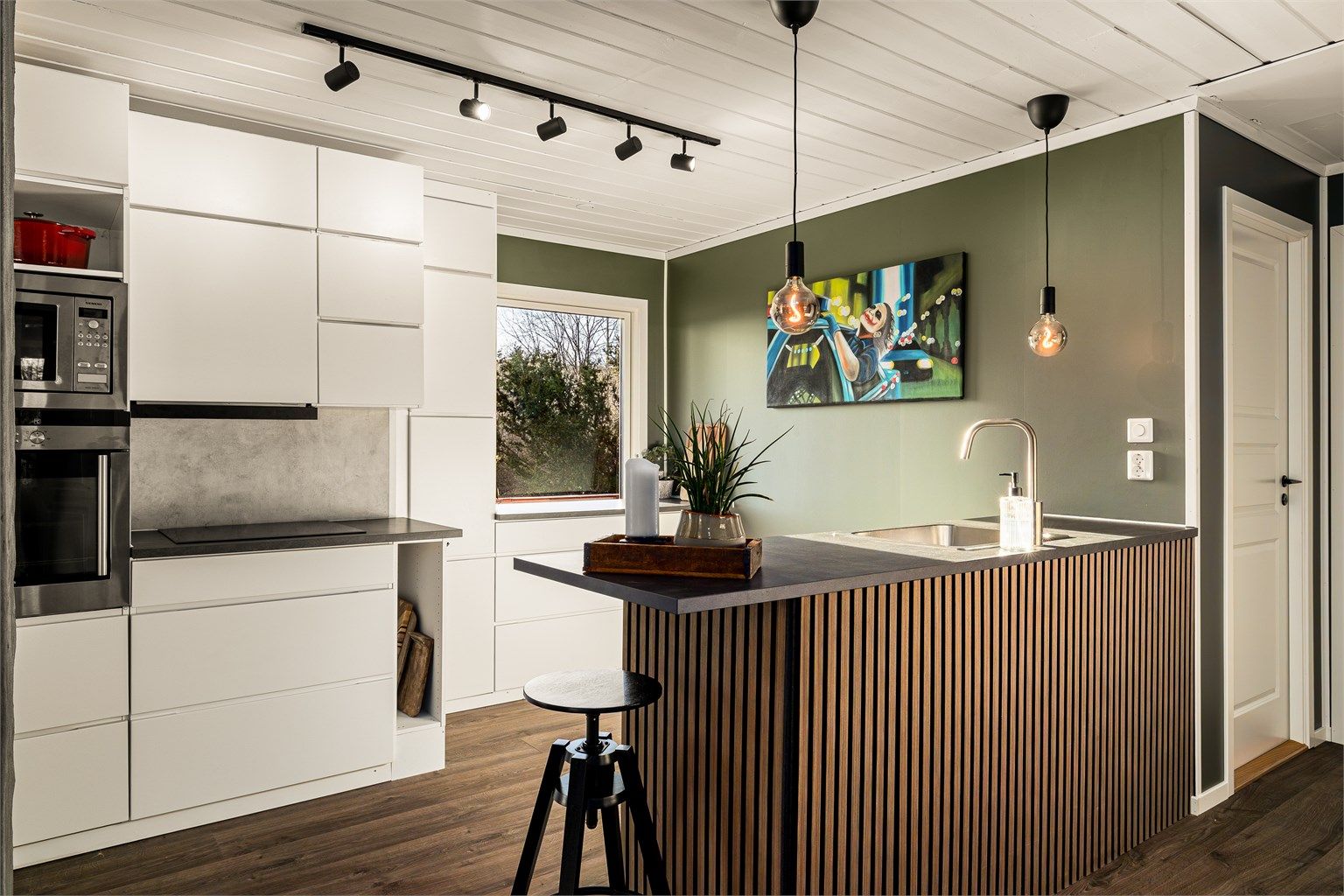 Boligen fremstår fint innredet og er malt i en moderne og tidsriktig fargepalett.