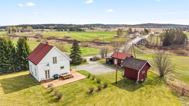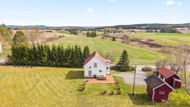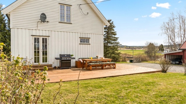 Småbruksfølelse nær Årnes – attraktiv enebolig med ca. 2,5 mål tomt!
