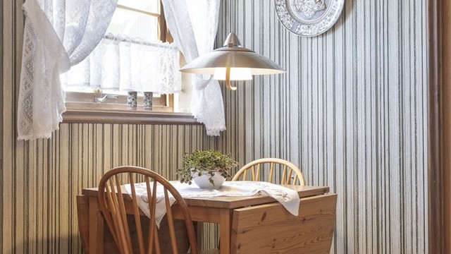Overflatene er av eldre dato med normal bruksslitasje. Det er eikegulv i stuene og tapet på vegger.