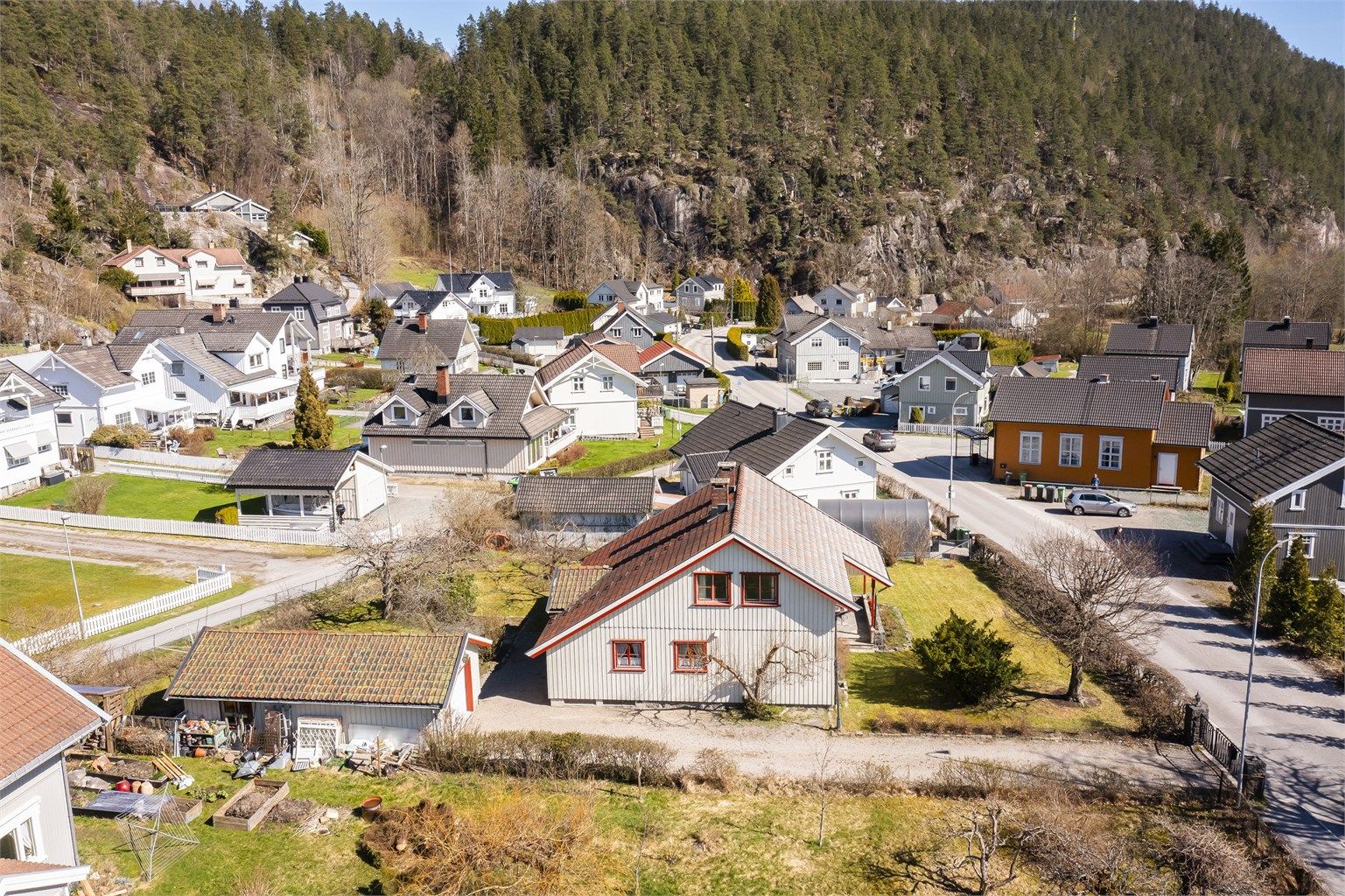 Eiendommen ligger sentralt til på Skotfoss med gangavstand til både skole, barnehage og matbutikk, samt kanalen og fine og historiske turområder ved Telemarkskanalen og Løveid sluser. Tomten er flat og lettstelt med pent opparbeidet med plen, bærbusker og trær.