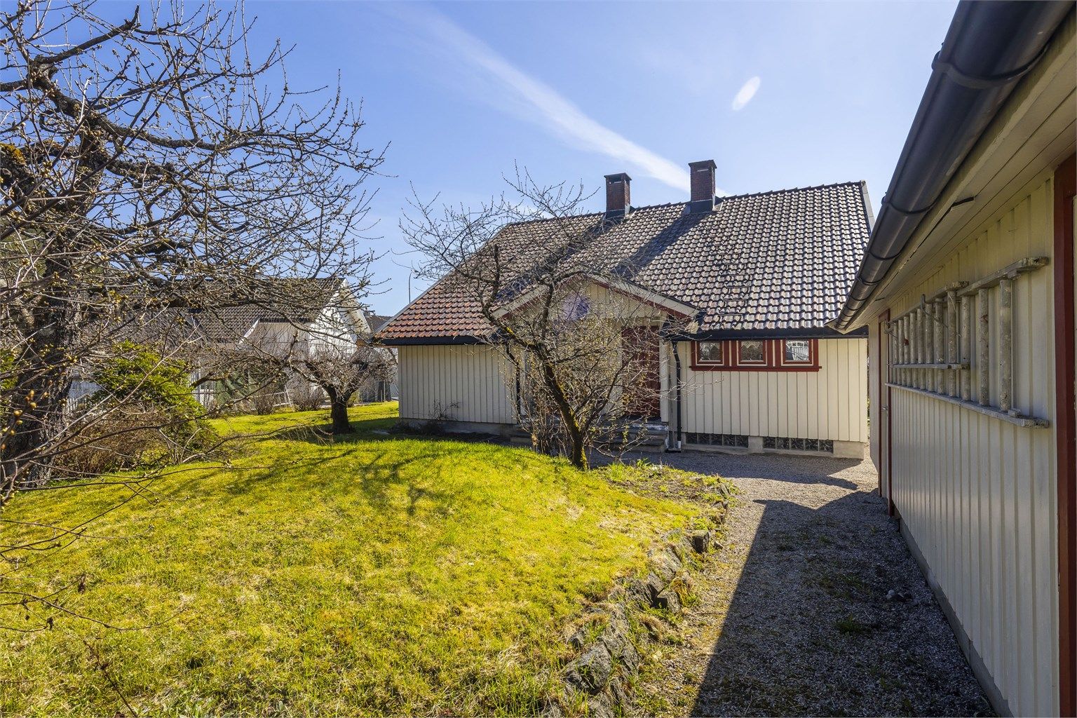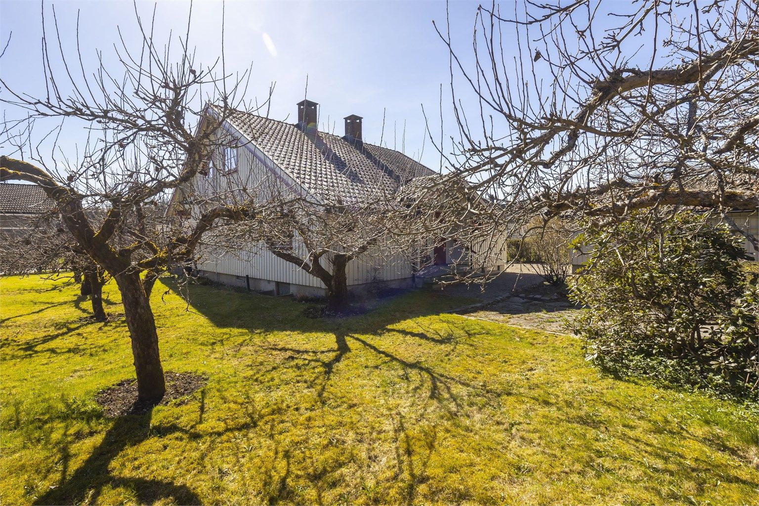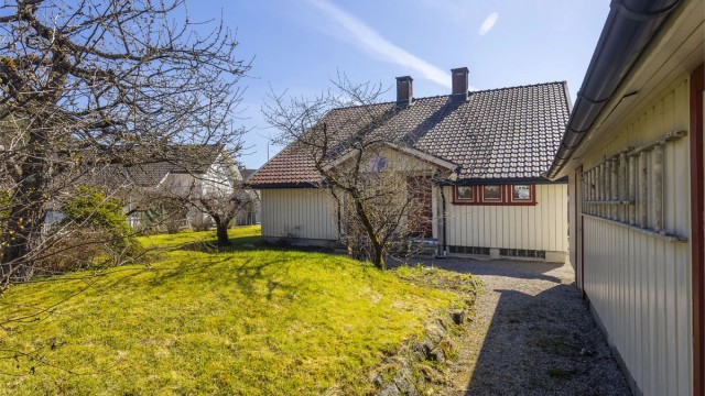 Familiebolig med oppussingsbehov på solrik og flat tomt - Pent opparbeidet med trær og bærbusker - Sentralt beliggende
