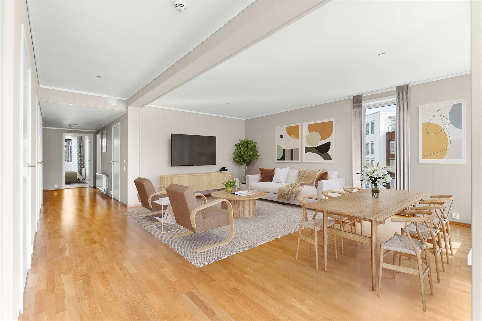 Velkommen til Drognestoppen 3 – en romslig og moderne 4-roms selveierleilighet i 3. etasje! Leiligheten har 3 soverom, stor og luftig stue med åpen kjøkkenløsning og gode lysforhold. Den innglassede balkongen på hele 14 kvm forlenger utesesongen og gir en skjermet uteplass. Det medfølger p-plass i oppvarmet garasjekjeller. Boligen holder en gjennomgående moderne standard med fjernvarme, og det er vannbåren gulvvarme på både bad og separat WC.