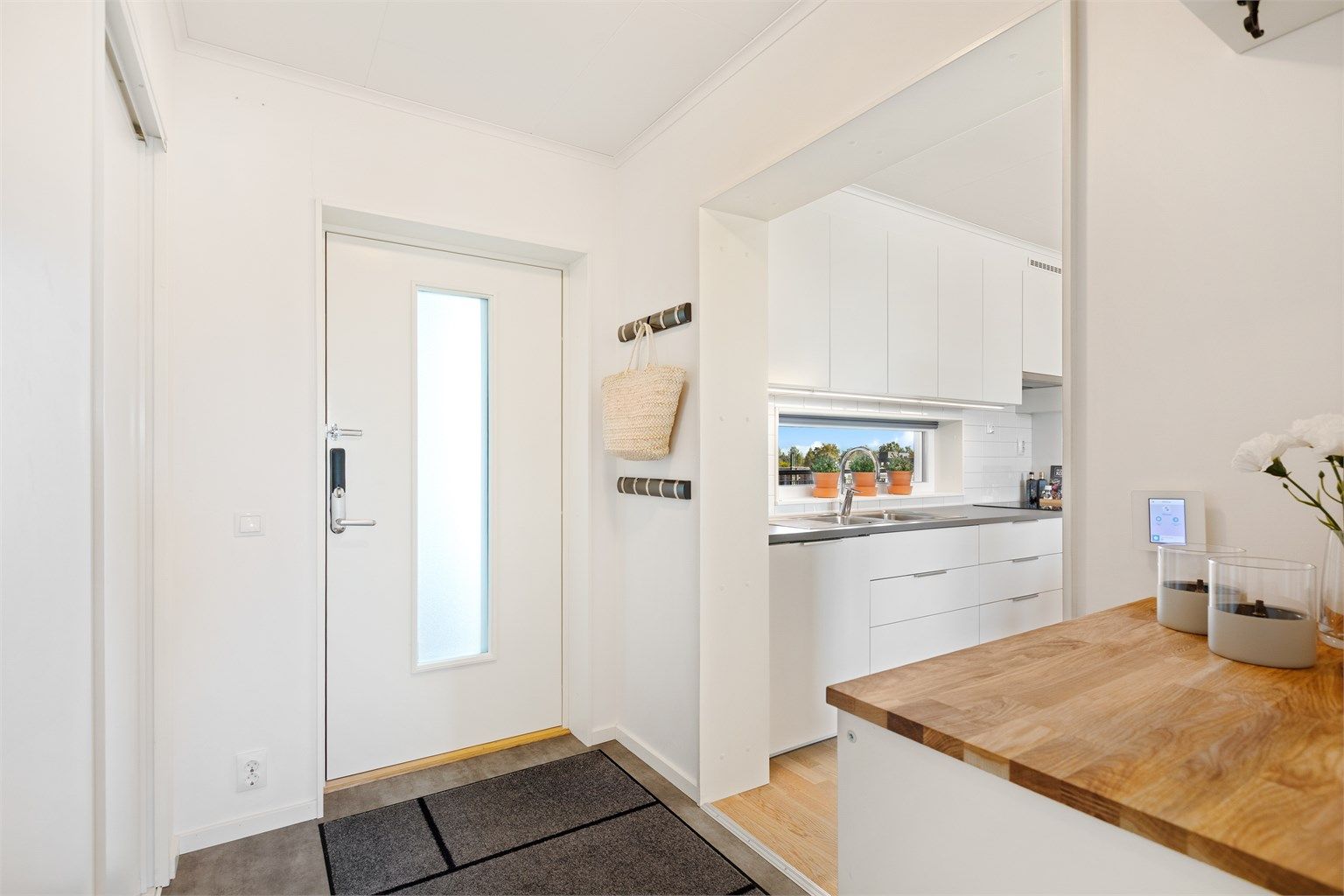 Leiligheten rommer en lys entré med tilknytning til praktisk bod med skyvedører, tiltalende stue og kjøkken i åpen løsning, flislagt bad med gulvvarme og et godt soverom. Utgang til vestvendt terrasse på ca. 7 kvm som blir en naturlig forlengelse av stuen på sommertid.