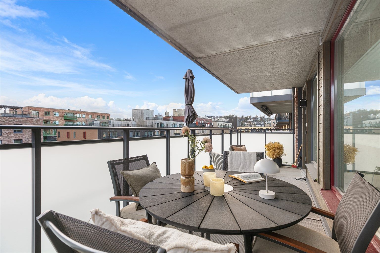 Leiligheten har en balkong på 15kvm med utgang fra stuen. Ideell som forlengelse av stuen hele sommerhalvåret.