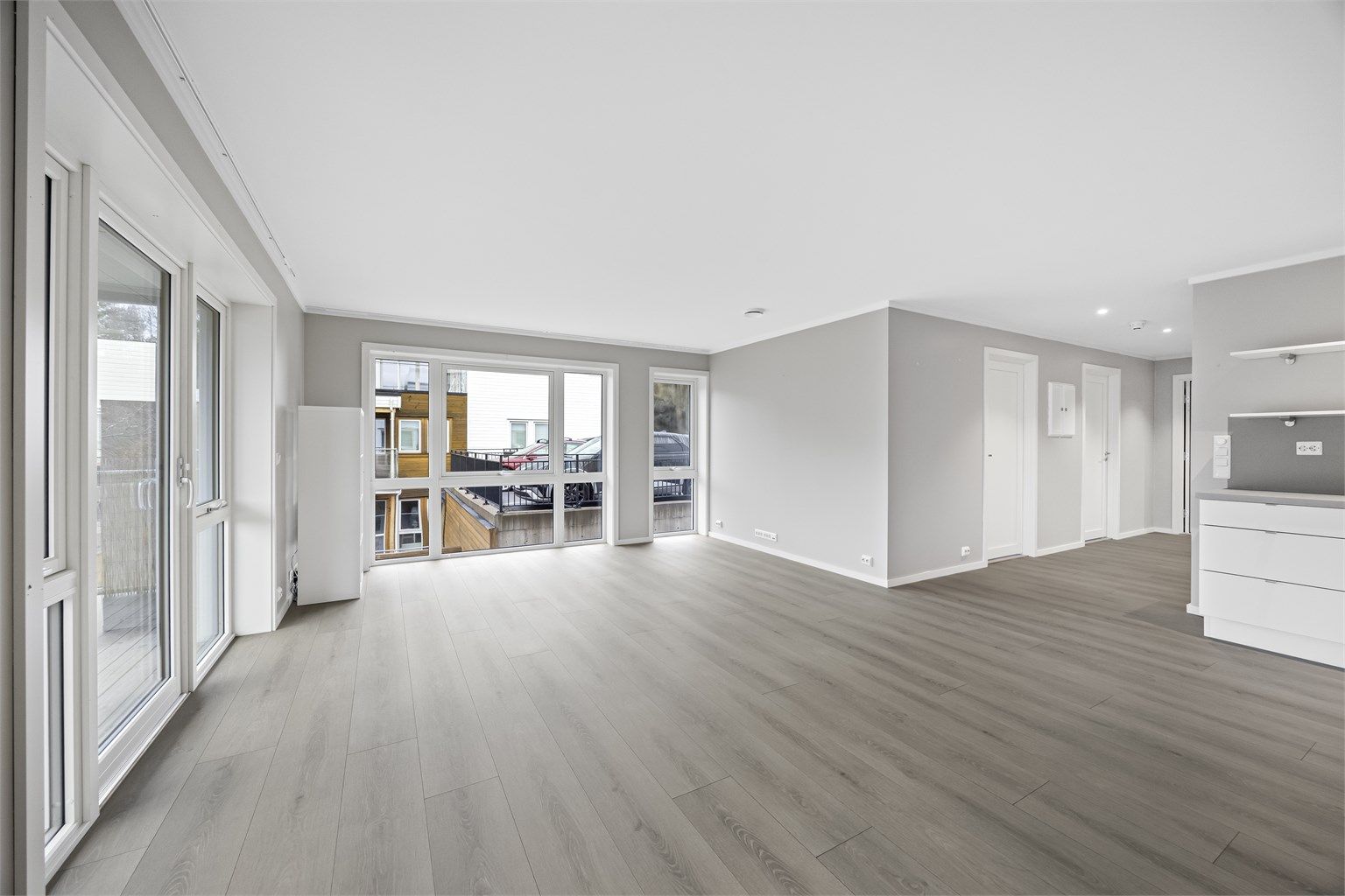 Leiligheten er flott plassert i høyden og med alt på en flate, og ca. 350 meter gange fra sentrum. Det er en god tilstand i leiligheten (98% TG1) og enkel adkomst fra bakkeplan. Leiligheten inneholder i dag to soverom, men dersom man setter opp lettvegger i deler av stuen er det fullt mulig å ha tre soverom iht. godkjente tegninger. Leiligheten inneholder: entré, stue/kjøkken, to soverom, bad med egen vaskeromsavdeling, to boder og romslig veranda. Det medfølger parkering i carport med elbillader og en fellesbod for sameiet til diverse fellesutstyr. Leiligheten har en flott veranda med delvis takoverbygg og nydelig utsikt utover Tjenna og området. Her kan man ha en enkel hverdag med gangavstand til alle sentrums fasiliteter!