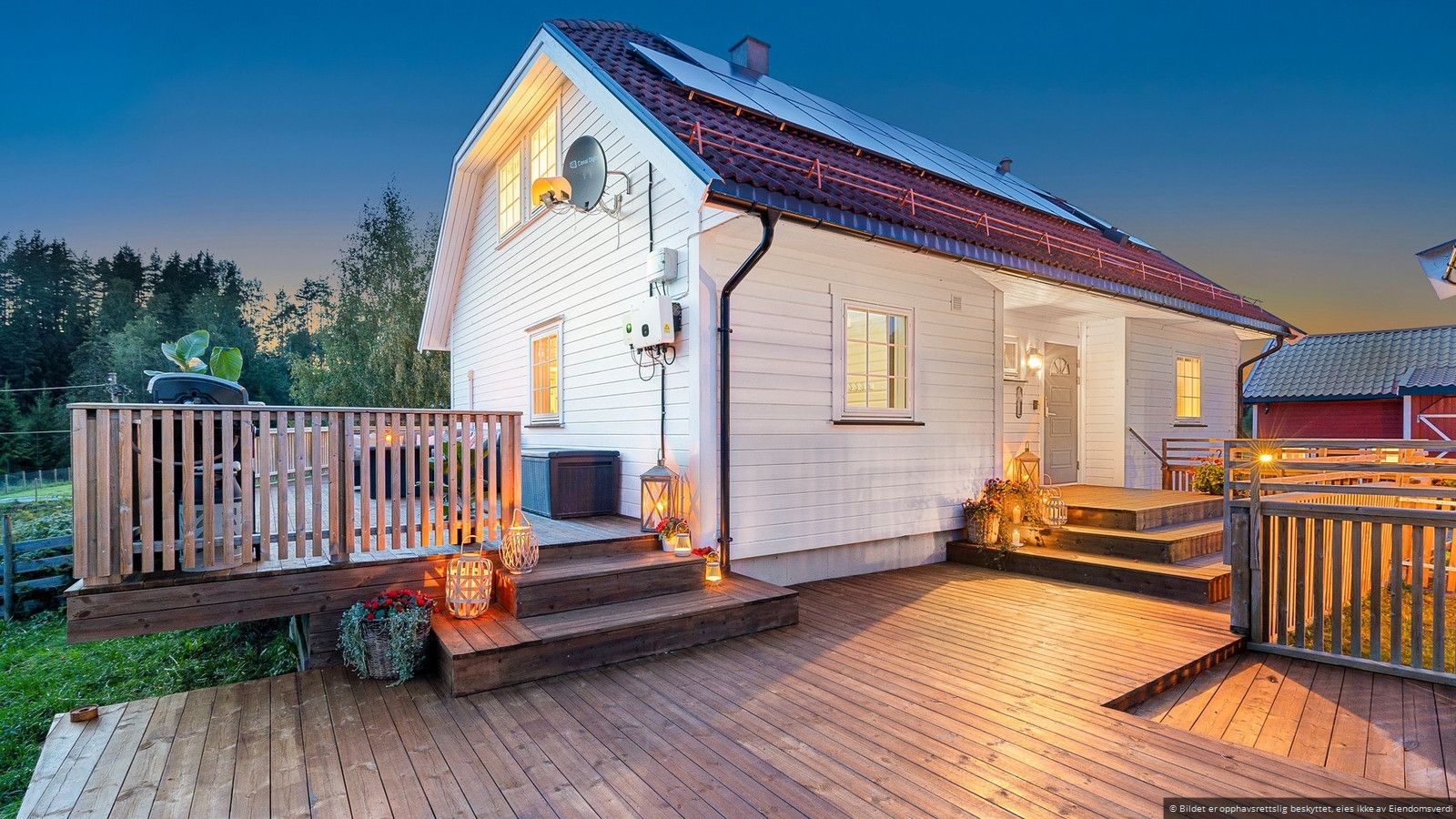 Ved siden av husets hovedinngang ligger en innbydende, frittstående hagestue på ca. 32 m², med et stort utvalg av bruksmuligheter. Denne allsidige plassen har tidligere fungert som badestue og brukes i dag som et kontor. Her er det rikelig med plass for hele familien til å bolte seg.