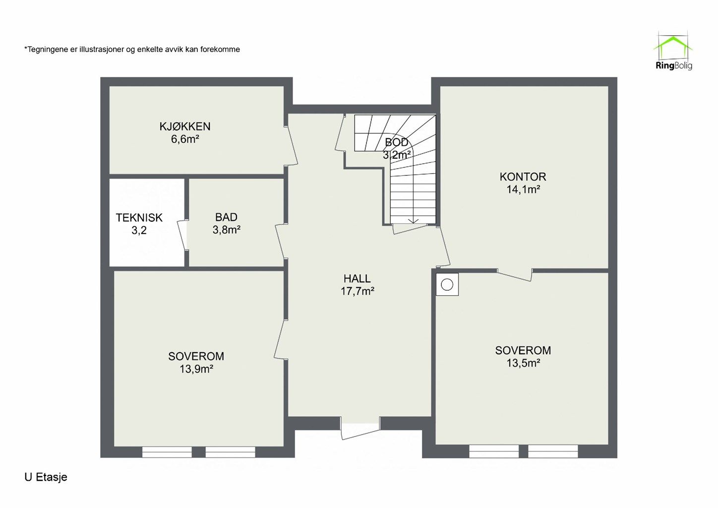 *Boden, stue, kontor og vaskerommet i underetasjen er ikke godkjent til varig opphold. Les mer under punkt om ferdigattest.
