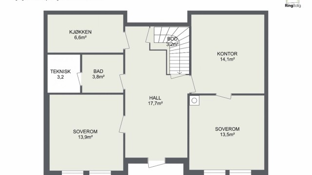 Underetasje: 77 kvm: Hall/trappegang, bod under trapp, soverom, bad, teknisk rom, kjøkken, kontor og soverom.