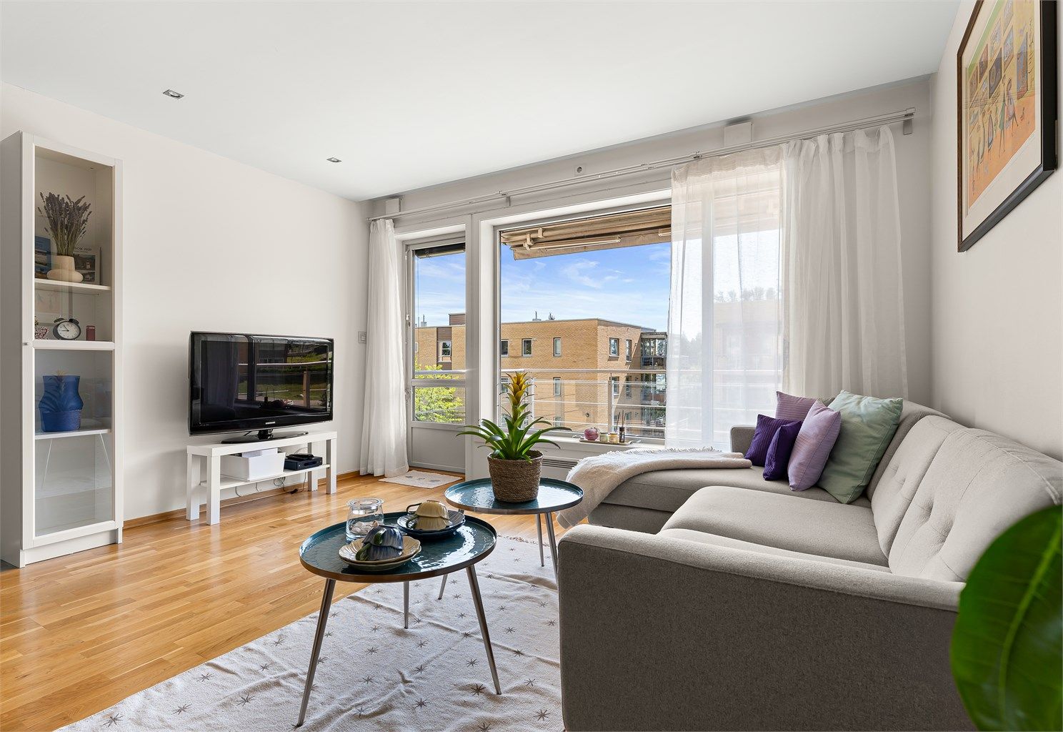 Lys og moderne leilighet i høy første etasje med både heis og trapp – ideelt ved tunge løft. Leiligheten er innflytningsklar og utstyrt med fjernstyrte spotlys, persienner og markise.